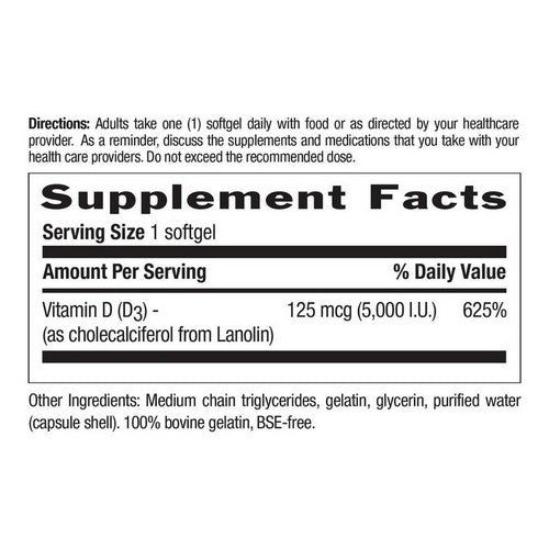 For adults only. Do not take if pregnant or lactating. Do not exceed recommended dose. Large doses of vitamin D may have adverse effects. If anyadverse reactions occur, stop taking product and consult a doctor. If planning surgery, taking medication or have a medical condition, consult a doctor before using this product. If taking more than 100 mcg (4,000 IU) Vitamin D daily, Vitamin D blood level monitoring is recommended.
