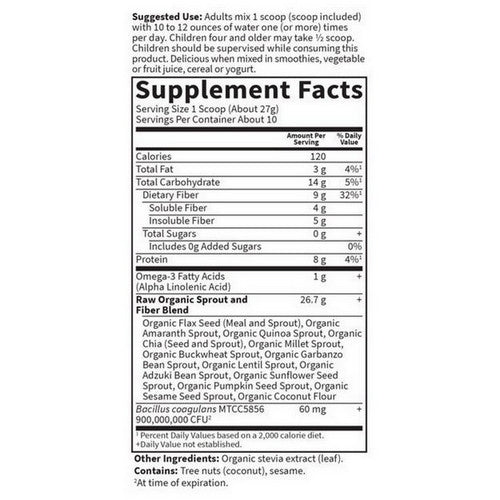 | Raw Organic Sprout & Fiber Blend | 19.6 g | + |