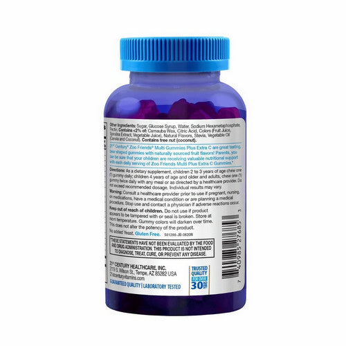 21ST Century Zoo Friends Multi Gummies are great tasting, bear shaped gummies with naturally sourced fruit flavors! Parents, you can be sure that your children are receiving valuable nutritional support with each daily serving of Zoo Friends Multi Gummies.*