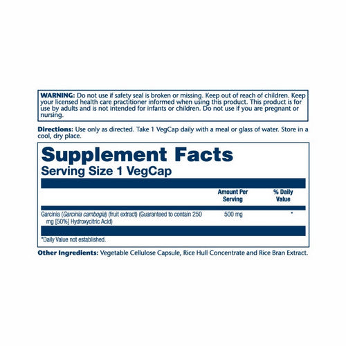 | Garcinia (Garcinia cambogia) (fruit extract) (Guaranteed to contain 250 mg [50%] Hydroxycitric Acid) | 500 mg | * |