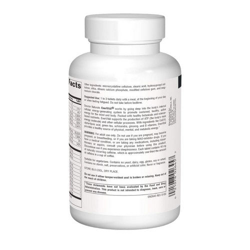 Source Naturals EnerVital works by going deep into the bodys internal cellular energy-generating system to promote sustained, healthy, active energy for the mind and body. Packed with healthy botanicals and sciencebased nutrients, EnerVital supports the production of ATP the bodys main energy molecule and other cellular processes. With ingredients like CoQ10, alpha-lipoic acid, green tea, schisandra, ginseng, and B vitamins, EnerVital provides a healthy source of physical, mental, and metabolic energy.