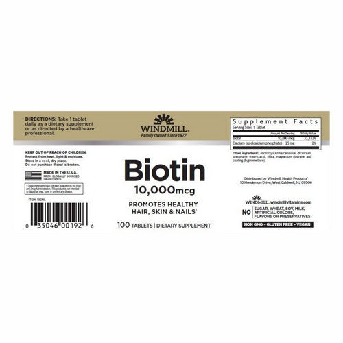 {"id":6868661076053,"title":"Windmill Health, Biotin, 10,000 Mcg, 100 Tabs","handle":"biotin-180544","description":"\u003cstrong\u003eProduct Description\u003c\/strong\u003e\u003cbr\u003e\u003cbr\u003e Biotin formula provides with a maximum strength. An essential b vitamin which aids in cell growth, fatty acid production, the metabolism of carbohydrates, fats, and proteins, and in the utilization of other b complex vitamins. \u003cbr\u003e\u003cbr\u003e\u003cstrong\u003eProduct Benefits\u003c\/strong\u003e\u003cbr\u003e\n\t\u003cbr\u003e Dietary Supplement.\nPromotes Healthy Hair Skin And Nails. \u003cbr\u003e\u003cbr\u003e\u003cstrong\u003eIngredients\u003c\/strong\u003e\u003cbr\u003e\u003cbr\u003e \n\t\u003cbr\u003e\u003cbr\u003e\u003cstrong\u003eSuggestions\u003c\/strong\u003e\u003cbr\u003e\u003cbr\u003e Directions: Take 1 tablet daily as a dietary supplement or as directed by a healthcare professional. \u003cbr\u003e\u003cbr\u003e\u003cstrong\u003eSpecial Note\u003c\/strong\u003e\u003cbr\u003e\u003cbr\u003e\n\tGluten Free.\nNon-GMO.\n\t\u003cbr\u003e\u003cbr\u003e\u003cstrong\u003eWarnings\u003c\/strong\u003e\u003cbr\u003e\u003cbr\u003e Non-GMO. \u003cbr\u003e\u003cbr\u003e\u003cstrong\u003eCalifornia Proposition 65 WARNING\u003c\/strong\u003e\u003cbr\u003e\u003cbr\u003eSome products on this website contains progesterone, a chemical known to the State of California to cause cancer. Consult with your physician before using this product.\u003cbr\u003e\u003cbr\u003e\u003cstrong\u003eDisclaimer\u003c\/strong\u003e\u003cbr\u003e\u003cbr\u003eHerbsdaily.com offers\n\t\t\t\t\t\t\t\tnationally branded products that are produced according to manufacturing standards\n\t\t\t\t\t\t\t\tset by regulators at everyday low prices. Do not use unproven, unbranded products, which can pose serious risks to your health.","published_at":"2022-11-01T22:49:03-07:00","created_at":"2022-11-01T22:49:05-07:00","vendor":"Windmill Health","type":"Skin Care","tags":["BodyCare","Brand_Windmill Health","DISAPPROVED","PersonalBeautyCare","SkinCare"],"price":1194,"price_min":1194,"price_max":1194,"available":true,"price_varies":false,"compare_at_price":1359,"compare_at_price_min":1359,"compare_at_price_max":1359,"compare_at_price_varies":false,"variants":[{"id":40401146740821,"title":"Default Title","option1":"Default Title","option2":null,"option3":null,"sku":"102841","requires_shipping":true,"taxable":true,"featured_image":null,"available":true,"name":"Windmill Health, Biotin, 10,000 Mcg, 100 Tabs","public_title":null,"options":["Default Title"],"price":1194,"weight":68,"compare_at_price":1359,"inventory_management":"shopify","barcode":"035046001926","requires_selling_plan":false,"selling_plan_allocations":[],"quantity_rule":{"min":1,"max":null,"increment":1}}],"images":["\/\/www.herbsdaily.com\/cdn\/shop\/files\/180544.jpg?v=1758689040","\/\/www.herbsdaily.com\/cdn\/shop\/files\/180544_1_699e388e-df7f-4512-8f94-0bdcdc9e426c.jpg?v=1758689040"],"featured_image":"\/\/www.herbsdaily.com\/cdn\/shop\/files\/180544.jpg?v=1758689040","options":["Title"],"media":[{"alt":null,"id":25763314761813,"position":1,"preview_image":{"aspect_ratio":1.0,"height":500,"width":500,"src":"\/\/www.herbsdaily.com\/cdn\/shop\/files\/180544.jpg?v=1758689040"},"aspect_ratio":1.0,"height":500,"media_type":"image","src":"\/\/www.herbsdaily.com\/cdn\/shop\/files\/180544.jpg?v=1758689040","width":500},{"alt":null,"id":25763314794581,"position":2,"preview_image":{"aspect_ratio":1.0,"height":500,"width":500,"src":"\/\/www.herbsdaily.com\/cdn\/shop\/files\/180544_1_699e388e-df7f-4512-8f94-0bdcdc9e426c.jpg?v=1758689040"},"aspect_ratio":1.0,"height":500,"media_type":"image","src":"\/\/www.herbsdaily.com\/cdn\/shop\/files\/180544_1_699e388e-df7f-4512-8f94-0bdcdc9e426c.jpg?v=1758689040","width":500}],"requires_selling_plan":false,"selling_plan_groups":[],"content":"\u003cstrong\u003eProduct Description\u003c\/strong\u003e\u003cbr\u003e\u003cbr\u003e Biotin formula provides with a maximum strength. An essential b vitamin which aids in cell growth, fatty acid production, the metabolism of carbohydrates, fats, and proteins, and in the utilization of other b complex vitamins. \u003cbr\u003e\u003cbr\u003e\u003cstrong\u003eProduct Benefits\u003c\/strong\u003e\u003cbr\u003e\n\t\u003cbr\u003e Dietary Supplement.\nPromotes Healthy Hair Skin And Nails. \u003cbr\u003e\u003cbr\u003e\u003cstrong\u003eIngredients\u003c\/strong\u003e\u003cbr\u003e\u003cbr\u003e \n\t\u003cbr\u003e\u003cbr\u003e\u003cstrong\u003eSuggestions\u003c\/strong\u003e\u003cbr\u003e\u003cbr\u003e Directions: Take 1 tablet daily as a dietary supplement or as directed by a healthcare professional. \u003cbr\u003e\u003cbr\u003e\u003cstrong\u003eSpecial Note\u003c\/strong\u003e\u003cbr\u003e\u003cbr\u003e\n\tGluten Free.\nNon-GMO.\n\t\u003cbr\u003e\u003cbr\u003e\u003cstrong\u003eWarnings\u003c\/strong\u003e\u003cbr\u003e\u003cbr\u003e Non-GMO. \u003cbr\u003e\u003cbr\u003e\u003cstrong\u003eCalifornia Proposition 65 WARNING\u003c\/strong\u003e\u003cbr\u003e\u003cbr\u003eSome products on this website contains progesterone, a chemical known to the State of California to cause cancer. Consult with your physician before using this product.\u003cbr\u003e\u003cbr\u003e\u003cstrong\u003eDisclaimer\u003c\/strong\u003e\u003cbr\u003e\u003cbr\u003eHerbsdaily.com offers\n\t\t\t\t\t\t\t\tnationally branded products that are produced according to manufacturing standards\n\t\t\t\t\t\t\t\tset by regulators at everyday low prices. Do not use unproven, unbranded products, which can pose serious risks to your health."}