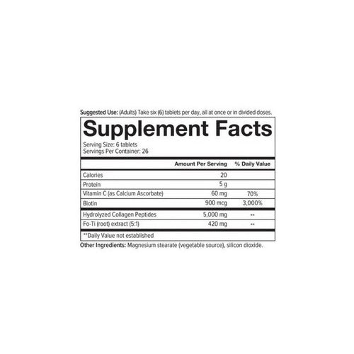 Enhanced With Vitamin C And Biotin. Dietary Supplement. Highly Absorbable Peptides. Replenishes Collagen. Revitalizes Skin And Hair. Boosts Protein Intake. Supports Tendons And Ligaments. Helps Combat Age Related Collagen. Supports Healthy Blood Vessels.