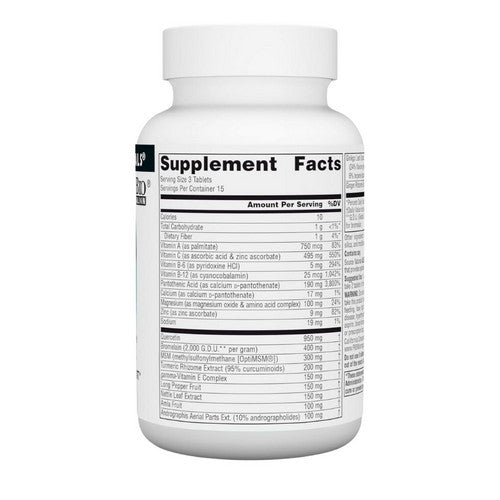 | Vitamin C (as ascorbic acid & zinc ascorbate) | 500 mg | 833% |