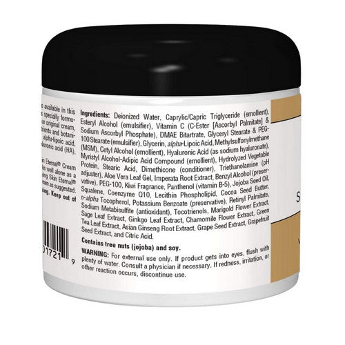| Deionized Water, Caprylic/Capric Triglyceride (emollient), Esteryl Alcohol (emulsifier), Vitamin C (C-Ester [Ascorbyl Palmitate] & Sodium Ascorbyl Phosphate), DMAE Bitartrate, Glyceryl Stearate & PEG100 Stearate (emulsifier), Glycerin, Glycolic Acid, alpha-Lipoic Acid, Methylsulfonylmethane (MSM), Cetyl Alcohol (emollient), Hyaluronic Acid (as sodium hyaluronate), Myristyl Alcohol-Adipic Acid Compound (emollient), Hydrolyzed Vegetable Protein, Stearic Acid, Dimethicone (conditioner), Triethanolamine (pH adjuster), Aloe Vera Leaf Gel, Imperata Root Extract, Benzyl Alcohol (preservative), PEG-100, Kiwi Fragrance, Panthenol (vitamin B-5), Jojoba Seed Oil, Squalene, Coenzyme Q10, Lecithin Phospholipid, Cocoa Seed Butter, D-alpha tocopherol, Potassium Benzoate (preservative), Retinyl Palmitate, Sodium Metabisulfite (antioxidant), Tocotrienols, Marigold Flower Extract, Sage Leaf Extract, Ginkgo Leaf Extract, Chamomile Flower Extract, Green Tea Leaf Extract, Asian Ginseng Root Extract, Grape Seed Extract, Grapefruit Seed Extract, and Citric Acid. | ||