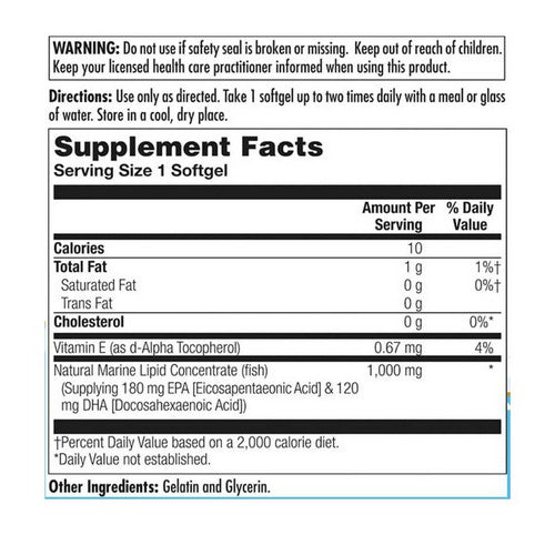 Natural Marine Lipid Concentrate (fish) (Supplying 180 mg EPA [Eicosapentaeonic Acid] & 120 mg DHA [Docosahexaenoic Acid]) 1,000 mg