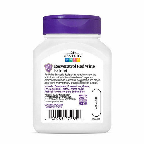 | Red Wine Complex Red Wine Extract (Vitis vinifera) (grape skin), Vitamin C (as Ascorbic Acid), Citrus Bioflavonoids (Citrus sinensis) (fruit), Grapeseed Extract (Vitis vinifera) (seed) (Standardized to contain Polyphenols), Red Wine Matrix (Vitis vinifera [fruit] and Polygonum cuspidatum [root]) (Standardized to contain Trans-Resveratrol), Pomegranate Extract (Punica granatum) (fruit) (Standardized to contain Ellagic Acid) | 200 mg | ** |