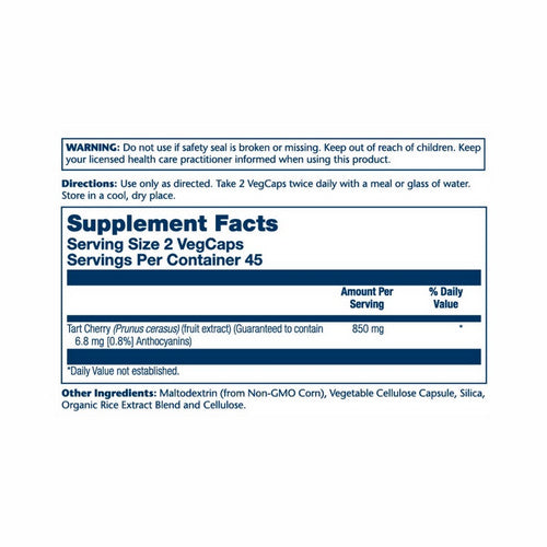 Tart Cherry (Prunus cerasus)  (fruit extract) (Guaranteed to contain 6.8 mg [0.8%] Anthocyanins) 850 mg *