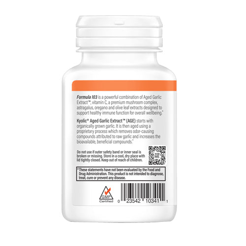 {"id":2584020713557,"title":"Kyolic, Aged Garlic Extract Immune Formula 103, 100 Caps","handle":"kyolic-aged-garlic-extract-immune-formula-103-18387","description":"\u003cstrong\u003eProduct Description\u003c\/strong\u003e\u003cbr\u003e\u003cbr\u003e \u003cdiv class=\"prodDescCls\"\u003e\u003cul\u003e\n\u003cli\u003eGMP Certified\u003c\/li\u003e\n\u003cli\u003eOdorless Organic Garlic Supplement\u003c\/li\u003e\n\u003cli\u003eVitamin C, Astragalus, Mushrooms\u003c\/li\u003e\n\u003c\/ul\u003e\u003c\/div\u003e \u003cbr\u003e\u003cbr\u003e\u003cstrong\u003eProduct Benefits\u003c\/strong\u003e\u003cbr\u003e\n\t\u003cbr\u003e This combination of vitamins, mushrooms and herbs helps to support healthy immune function. \u003cbr\u003e\u003cbr\u003e\u003cstrong\u003eIngredients\u003c\/strong\u003e\u003cbr\u003e\u003cbr\u003e \u003cdiv class=\"prodSupCls\"\u003e\u003ctable width=\"100%\" cellpadding=\"3\" cellspacing=\"0\"\u003e\n\u003ctr\u003e\u003ctd colspan=\"3\"\u003e\n\u003cstrong style=\"font-size:16px;\"\u003eSupplement Facts\u003c\/strong\u003e\u003cspan class=\"subSpan\"\u003e\u003cstrong\u003eServing Size:\u003c\/strong\u003e 2 capsules\u003c\/span\u003e\n\u003c\/td\u003e\u003c\/tr\u003e\n\u003ctr\u003e\n\u003ctd width=\"70%\"\u003e \u003c\/td\u003e\n\u003ctd width=\"15%\"\u003e\u003cstrong\u003eAmount per Serving\u003c\/strong\u003e\u003c\/td\u003e\n\u003ctd width=\"15%\"\u003e\u003cstrong\u003e% Daily Value\u003c\/strong\u003e\u003c\/td\u003e\n\u003c\/tr\u003e\n\u003ctr\u003e\n\u003ctd\u003eVitamin C (calcium ascorbate)\u003c\/td\u003e\n\u003ctd\u003e105 mg\u003c\/td\u003e\n\u003ctd\u003e175%\u003c\/td\u003e\n\u003c\/tr\u003e\n\u003ctr\u003e\n\u003ctd\u003eAged Garlic Extract†† Powder (bulb)\u003c\/td\u003e\n\u003ctd\u003e440 mg\u003c\/td\u003e\n\u003ctd\u003e**\u003c\/td\u003e\n\u003c\/tr\u003e\n\u003ctr\u003e\n\u003ctd\u003ePremium Mushroom Complex\u003c\/td\u003e\n\u003ctd\u003e150 mg\u003c\/td\u003e\n\u003ctd\u003e**\u003c\/td\u003e\n\u003c\/tr\u003e\n\u003ctr\u003e\n\u003ctd colspan=\"2\"\u003eShiitake, Maitake, Poria Cocos, Reishi and Agaricus\u003c\/td\u003e\n\u003ctd\u003e \u003c\/td\u003e\n\u003c\/tr\u003e\n\u003ctr\u003e\n\u003ctd\u003eAstragalus extract (root)\u003c\/td\u003e\n\u003ctd\u003e100 mg\u003c\/td\u003e\n\u003ctd\u003e**\u003c\/td\u003e\n\u003c\/tr\u003e\n\u003ctr\u003e\n\u003ctd\u003eOregano Extract (leaf)\u003c\/td\u003e\n\u003ctd\u003e100 mg\u003c\/td\u003e\n\u003ctd\u003e**\u003c\/td\u003e\n\u003c\/tr\u003e\n\u003ctr\u003e\n\u003ctd\u003eOlive Leaf extract (Oleuropein 18%)\u003c\/td\u003e\n\u003ctd\u003e80 mg\u003c\/td\u003e\n\u003ctd\u003e**\u003c\/td\u003e\n\u003c\/tr\u003e\n\u003ctr\u003e\u003ctd colspan=\"3\"\u003e**Daily Value not established.\u003cbr\u003e ††Special Garlic Preparation.\u003c\/td\u003e\u003c\/tr\u003e\n\u003ctr\u003e\u003ctd colspan=\"3\"\u003e\n\u003cb\u003eOther Ingredients\u003c\/b\u003e\u003cdiv class=\"prodIngCls\"\u003e\n\u003cp\u003eGelatin and magnesium stearate (vegetable source).\u003c\/p\u003e\n\u003cp\u003eFree of: sodium, yeast, dairy, preservatives, sugar, gluten, artificial colors or flavors.\u003c\/p\u003e\n\u003c\/div\u003e\n\u003c\/td\u003e\u003c\/tr\u003e\n\u003c\/table\u003e\u003c\/div\u003e\n\t\u003cbr\u003e\u003cbr\u003e\u003cstrong\u003eSuggestions\u003c\/strong\u003e\u003cbr\u003e\u003cbr\u003e \u003cdiv class=\"prodDescCls\"\u003e\n\u003cp\u003eTake two or more capsules with a meal twice daily.\u003c\/p\u003e \u003c\/div\u003e \u003cbr\u003e\u003cbr\u003e\u003cstrong\u003eSpecial Note\u003c\/strong\u003e\u003cbr\u003e\u003cbr\u003e\n\tFREE OF: Sodium, Yeast, Dairy, Preservatives, Sugar, Gluten, Artificial Colors or Flavors.\n\nStore in a cool, dry place with cap tight. Keep out of reach of children.\n\t\u003cbr\u003e\u003cbr\u003e\u003cstrong\u003eWarnings\u003c\/strong\u003e\u003cbr\u003e\u003cbr\u003e \u003cdiv class=\"prodDescCls\"\u003e\n\u003cp\u003eStore in a cool, dry place with cap tight. Keep out of reach of children.\u003c\/p\u003e\n\u003cp\u003eDo not use if cap drop ring or inner seal is broken or missing.\u003c\/p\u003e\n\u003c\/div\u003e\u003cdiv class=\"prodEmtCls\"\u003e\u003c\/div\u003e \u003cbr\u003e\u003cbr\u003e","published_at":"2019-05-28T02:06:23-07:00","created_at":"2019-05-28T02:06:24-07:00","vendor":"Kyolic","type":"Garlic","tags":["Ailment Alzheimer's Disease","Ailment Cardiovascular Disease","Ailment Dementia","Ailment Fatigue","Ailment Heart Disease","Benefits Aging Support","Benefits Antioxidant Support","Benefits Blood Pressure Support","Benefits Cardiovascular Support","Benefits Cholesterol Support","Benefits Detoxification Support","Benefits Promotes Emotional Balance","Benefits Promotes Mental Clarity","Benefits Promotes Optimal Well-Being","Benefits Relief From Cold And Flu and Flu","Body Part\/Organ Heart","Brand_Kyolic","mapped_vendor_product","Offer_30%_40%_OffÊ","Price_$ 10 - $ 20","Symptoms Common Cold","Symptoms Fatigue","Symptoms Headache","Symptoms High Blood Pressure","Symptoms Oxidative Stress","Vitamins\u0026Supplements","VNS_G","VNS_Garlic"],"price":1357,"price_min":1357,"price_max":1357,"available":true,"price_varies":false,"compare_at_price":1809,"compare_at_price_min":1809,"compare_at_price_max":1809,"compare_at_price_varies":false,"variants":[{"id":32897051263061,"title":"Default Title","option1":"Default Title","option2":null,"option3":null,"sku":"18387","requires_shipping":true,"taxable":true,"featured_image":null,"available":true,"name":"Kyolic, Aged Garlic Extract Immune Formula 103, 100 Caps","public_title":null,"options":["Default Title"],"price":1357,"weight":141,"compare_at_price":1809,"inventory_management":"shopify","barcode":"023542103411","requires_selling_plan":false,"selling_plan_allocations":[],"quantity_rule":{"min":1,"max":null,"increment":1}}],"images":["\/\/www.herbsdaily.com\/cdn\/shop\/files\/20065_657c8dba-bc7f-483f-8a73-5e66d3f92b5d.jpg?v=1751287040","\/\/www.herbsdaily.com\/cdn\/shop\/files\/20065_1.jpg?v=1751287040","\/\/www.herbsdail