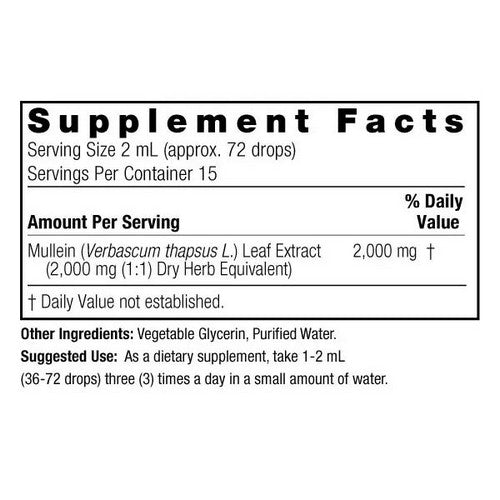 | Mullein (Verbascum thapsus) Leaf Extact | 2,000 mg (2 g) | † |