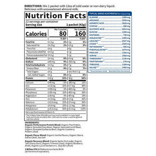 Organic Plant BasedVegan, Gluten Free, Dairy Free, Soy Free, No Added Sugars