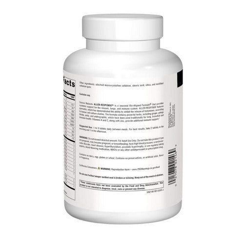 Source Naturals Aller-Response is a Bio-Aligned seasonal formula that provides systemic support for the sinuses, lungs, and immune system.