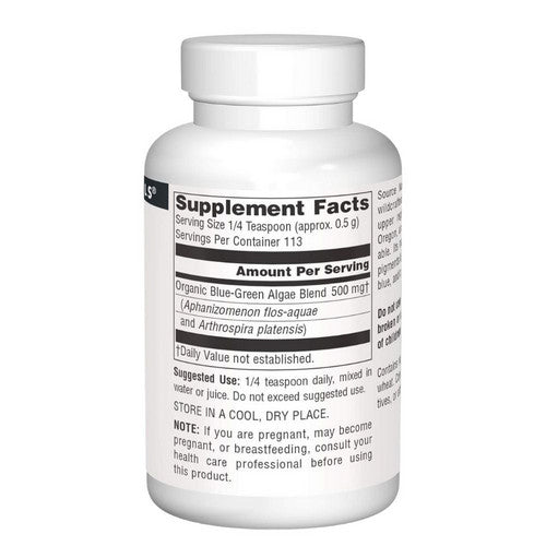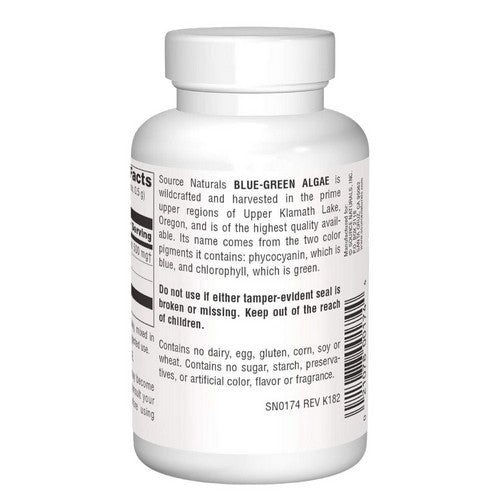 {"id":6869109440597,"title":"Source Naturals, Blue-Green Algae, Powder 2 Oz","handle":"bluegreen-algae-6132","description":"\u003cstrong\u003eProduct Description\u003c\/strong\u003e\u003cbr\u003e\u003cbr\u003e \t\t\t\t\t\t\t \u003cdiv class=\"prodDescCls\"\u003e\u003cul\u003e\n\u003cli\u003eConsidered as Dietary Supplement\u003c\/li\u003e\n\u003cli\u003eFreeze-Dried \u003c\/li\u003e\n\u003cli\u003eFrom Klamath Lake\u003c\/li\u003e\n\u003c\/ul\u003e\u003c\/div\u003e \n\t\t\t\t\t\t \u003cbr\u003e\u003cbr\u003e\u003cstrong\u003eProduct Benefits\u003c\/strong\u003e\u003cbr\u003e\n\t\u003cbr\u003e \u003cbr\u003e\u003cbr\u003e\u003cstrong\u003eIngredients\u003c\/strong\u003e\u003cbr\u003e\u003cbr\u003e \u003cdiv class=\"prodSupCls\"\u003e\u003ctable width=\"100%\" cellspacing=\"0\" cellpadding=\"3\"\u003e\n\u003ctr\u003e\u003ctd colspan=\"3\"\u003e\n\u003cstrong style=\"font-size:16px;\"\u003eSupplement Facts \u003c\/strong\u003e\u003cbr\u003e\u003cstrong\u003eServing Size: \u003c\/strong\u003e1\/2 Teaspoon (approx. 1 gram) \u003cspan class=\"subSpan\"\u003e\u003cstrong\u003eServings Per Container:\u003c\/strong\u003e 113 \u003c\/span\u003e\n\u003c\/td\u003e\u003c\/tr\u003e\n\u003ctr\u003e\n\u003ctd width=\"55%\"\u003e \u003c\/td\u003e\n\u003ctd width=\"25%\"\u003e\u003cstrong\u003eAmount Per Serving\u003c\/strong\u003e\u003c\/td\u003e\n\u003ctd width=\"20%\"\u003e\u003cstrong\u003e%DV*\u003c\/strong\u003e\u003c\/td\u003e\n\u003c\/tr\u003e\n\u003ctr\u003e\n\u003ctd\u003eProtein\u003c\/td\u003e\n\u003ctd\u003e1 g \u003c\/td\u003e\n\u003ctd\u003e2%\u003c\/td\u003e\n\u003c\/tr\u003e\n\u003ctr\u003e\n\u003ctd\u003eBlue-Green Algae \u003c\/td\u003e\n\u003ctd\u003e1 g \u003c\/td\u003e\n\u003ctd\u003e†\u003c\/td\u003e\n\u003c\/tr\u003e\n\u003ctr\u003e\n\u003ctd\u003e\u003cem\u003e(Aphanizomenon flos-aquae) \u003c\/em\u003e\u003c\/td\u003e\n\u003ctd\u003e \u003c\/td\u003e\n\u003ctd\u003e \u003c\/td\u003e\n\u003c\/tr\u003e\n\u003ctr\u003e\n\u003ctd\u003eYielding approximately**: \u003c\/td\u003e\n\u003ctd\u003e \u003c\/td\u003e\n\u003ctd\u003e \u003c\/td\u003e\n\u003c\/tr\u003e\n\u003ctr\u003e\n\u003ctd\u003eVitamin E \u003c\/td\u003e\n\u003ctd\u003e0.23 IU \u003c\/td\u003e\n\u003ctd\u003e\u0026lt;2%\u003c\/td\u003e\n\u003c\/tr\u003e\n\u003ctr\u003e\n\u003ctd\u003eVitamin B-12 \u003c\/td\u003e\n\u003ctd\u003e0.26 mcg \u003c\/td\u003e\n\u003ctd\u003e4%\u003c\/td\u003e\n\u003c\/tr\u003e\n\u003ctr\u003e\n\u003ctd\u003eCalcium\u003c\/td\u003e\n\u003ctd\u003e7 mg \u003c\/td\u003e\n\u003ctd\u003e\u0026lt;2%\u003c\/td\u003e\n\u003c\/tr\u003e\n\u003ctr\u003e\n\u003ctd\u003ePhosphorus\u003c\/td\u003e\n\u003ctd\u003e7 mg \u003c\/td\u003e\n\u003ctd\u003e\u0026lt;2%\u003c\/td\u003e\n\u003c\/tr\u003e\n\u003ctr\u003e\n\u003ctd\u003eIodine\u003c\/td\u003e\n\u003ctd\u003e22 mcg \u003c\/td\u003e\n\u003ctd\u003e15%\u003c\/td\u003e\n\u003c\/tr\u003e\n\u003ctr\u003e\n\u003ctd\u003eMagnesium\u003c\/td\u003e\n\u003ctd\u003e2 mg \u003c\/td\u003e\n\u003ctd\u003e\u0026lt;2%\u003c\/td\u003e\n\u003c\/tr\u003e\n\u003ctr\u003e\n\u003ctd\u003eZinc\u003c\/td\u003e\n\u003ctd\u003e7 mg \u003c\/td\u003e\n\u003ctd\u003e45%\u003c\/td\u003e\n\u003c\/tr\u003e\n\u003ctr\u003e\n\u003ctd\u003eManganese\u003c\/td\u003e\n\u003ctd\u003e22 mcg \u003c\/td\u003e\n\u003ctd\u003e\u0026lt;2%\u003c\/td\u003e\n\u003c\/tr\u003e\n\u003ctr\u003e\n\u003ctd\u003eMolybdenum\u003c\/td\u003e\n\u003ctd\u003e40 mcg \u003c\/td\u003e\n\u003ctd\u003e50%\u003c\/td\u003e\n\u003c\/tr\u003e\n\u003ctr\u003e\n\u003ctd\u003ePotassium\u003c\/td\u003e\n\u003ctd\u003e15 mg \u003c\/td\u003e\n\u003ctd\u003e\u0026lt;2%\u003c\/td\u003e\n\u003c\/tr\u003e\n\u003ctr\u003e\u003ctd colspan=\"3\"\u003e*Percent Daily Values (%DV) are based on a 2,000 calorie diet.\u003cbr\u003e **This list represents a typical yield. Each lot may vary slightly. \u003cbr\u003e † Daily Value not established. \u003c\/td\u003e\u003c\/tr\u003e\n\u003ctr\u003e\u003ctd colspan=\"3\"\u003e\n\u003cb\u003eOther Ingredients\u003c\/b\u003e\u003cdiv class=\"prodIngCls\"\u003e\u003cp\u003e Suitable for vegetarians and Hypoallergenic: contains no yeast, dairy, egg, gluten, corn, soy or wheat. Contains no sugar, starch, salt, preservatives, or artificial color, flavor or fragrance.\u003c\/p\u003e\u003c\/div\u003e\n\u003c\/td\u003e\u003c\/tr\u003e\n\u003c\/table\u003e\u003c\/div\u003e\n\t\u003cbr\u003e\u003cbr\u003e\u003cstrong\u003eSuggestions\u003c\/strong\u003e\u003cbr\u003e\u003cbr\u003e \u003cdiv class=\"prodDescCls\"\u003e\n\u003cp\u003e1\/2 teaspoons (1 gram) daily, mixed in water or juice, preferably on an empty stomach.\u003c\/p\u003e \u003c\/div\u003e \u003cbr\u003e\u003cbr\u003e\u003cstrong\u003eSpecial Note\u003c\/strong\u003e\u003cbr\u003e\u003cbr\u003e\n\tNote: Suitable for vegetarians and HYPOALLERGENIC: contains no yeast, dairy, egg , gluten, corn, soy or wheat. Contains no sugar, starch, salt, preservatives or artificial color, flavor, or fragrance.\n\t\u003cbr\u003e\u003cbr\u003e\u003cstrong\u003eWarnings\u003c\/strong\u003e\u003cbr\u003e\u003cbr\u003e \u003cdiv class=\"prodDescCls\"\u003e\n\u003cp\u003eIf you are pregnant, may become pregnant or breastfeeding, consult your health care professional before using this product.\u003c\/p\u003e \u003cp\u003eDo not use if either tamper-evident seal is broken or missing. Keep out of the reach of children.\u003c\/p\u003e \u003cp\u003eStore in a cool, dry place. \u003c\/p\u003e\n\u003c\/div\u003e \u003cdiv class=\"prodEmtCls\"\u003e\u003c\/div\u003e \u003cbr\u003e\u003cbr\u003e\u003cstrong\u003eCalifornia Proposition 65 WARNING\u003c\/strong\u003e\u003cbr\u003e\u003cbr\u003eSome products on this website contains progesterone, a chemical known to the State of California to cause cancer. Consult with your physician before using this product.\u003cbr\u003e\u003cbr\u003e\u003cstrong\u003eDisclaimer\u003c\/strong\u003e\u003cbr\u003e\u003cbr\u003eHerbsdaily.com offers\n\t\t\t\t\t\t\t\tnationally branded products that are produced according to manufacturing standa