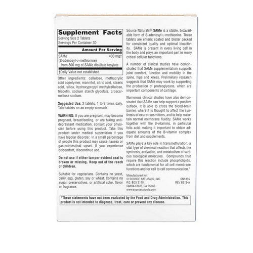| SAMe (S-adenosyl-L-methionine) from 800 mg of SAMe disulfate tosylate | 400 mg | † |