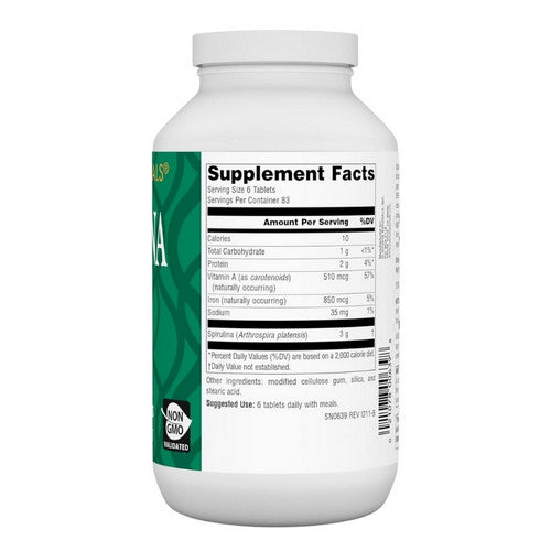 {"id":6869125431381,"title":"Source Naturals, Spirulina, 500 MG, 500 Tabs","handle":"spirulina-6639","description":"\u003cstrong\u003eProduct Description\u003c\/strong\u003e\u003cbr\u003e\u003cbr\u003e \u003cdiv class=\"prodDescCls\"\u003e\u003cul\u003e\u003cli\u003eConsidered as Dietary Supplement\u003c\/li\u003e\u003c\/ul\u003e\u003c\/div\u003e \u003cbr\u003e\u003cbr\u003e\u003cstrong\u003eProduct Benefits\u003c\/strong\u003e\u003cbr\u003e\n\t\u003cbr\u003e \u003cbr\u003e\u003cbr\u003e\u003cstrong\u003eIngredients\u003c\/strong\u003e\u003cbr\u003e\u003cbr\u003e \u003cdiv class=\"prodSupCls\"\u003e\u003ctable width=\"100%\" cellspacing=\"0\" cellpadding=\"3\"\u003e\n\u003ctr\u003e\u003ctd colspan=\"3\"\u003e\n\u003cstrong style=\"font-size:16px;\"\u003eSupplement Facts\u003c\/strong\u003e\u003cspan class=\"subSpan\"\u003e\u003cstrong\u003eServing Size:\u003c\/strong\u003e 6 Tablets\u003c\/span\u003e\u003cspan class=\"subSpan\"\u003e\u003cstrong\u003eServings Per Container:\u003c\/strong\u003e 33\u003c\/span\u003e\n\u003c\/td\u003e\u003c\/tr\u003e\n\u003ctr\u003e\n\u003ctd width=\"70%\"\u003e \u003c\/td\u003e\n\u003ctd width=\"15%\"\u003e\u003cstrong\u003eAmount Per Serving\u003c\/strong\u003e\u003c\/td\u003e\n\u003ctd width=\"15%\"\u003e\u003cstrong\u003e%DV\u003c\/strong\u003e\u003c\/td\u003e\n\u003c\/tr\u003e\n\u003ctr\u003e\n\u003ctd\u003eCalories\u003c\/td\u003e\n\u003ctd\u003e10\u003c\/td\u003e\n\u003ctd\u003e \u003c\/td\u003e\n\u003c\/tr\u003e\n\u003ctr\u003e\n\u003ctd\u003eTotal Carbohydrate\u003c\/td\u003e\n\u003ctd\u003e1 g\u003c\/td\u003e\n\u003ctd\u003e\u0026lt;1%*\u003c\/td\u003e\n\u003c\/tr\u003e\n\u003ctr\u003e\n\u003ctd\u003eSodium\u003c\/td\u003e\n\u003ctd\u003e20 mg\u003c\/td\u003e\n\u003ctd\u003e1%\u003c\/td\u003e\n\u003c\/tr\u003e\n\u003ctr\u003e\n\u003ctd\u003eSpirulina (Arthrospira platensis)\u003c\/td\u003e\n\u003ctd\u003e3 g\u003c\/td\u003e\n\u003ctd\u003e†\u003c\/td\u003e\n\u003c\/tr\u003e\n\u003ctr\u003e\u003ctd colspan=\"3\"\u003eYielding Approximately:\u003c\/td\u003e\u003c\/tr\u003e\n\u003ctr\u003e\n\u003ctd\u003eProtein\u003c\/td\u003e\n\u003ctd\u003e2 g\u003c\/td\u003e\n\u003ctd\u003e4%*\u003c\/td\u003e\n\u003c\/tr\u003e\n\u003ctr\u003e\n\u003ctd\u003eVitamin A (as beta-carotene)\u003c\/td\u003e\n\u003ctd\u003e6,000 IU\u003c\/td\u003e\n\u003ctd\u003e120%\u003c\/td\u003e\n\u003c\/tr\u003e\n\u003ctr\u003e\n\u003ctd\u003eVitamin K\u003c\/td\u003e\n\u003ctd\u003e16 mcg\u003c\/td\u003e\n\u003ctd\u003e20%\u003c\/td\u003e\n\u003c\/tr\u003e\n\u003ctr\u003e\n\u003ctd\u003eVitamin B-12\u003c\/td\u003e\n\u003ctd\u003e3 mcg\u003c\/td\u003e\n\u003ctd\u003e50%\u003c\/td\u003e\n\u003c\/tr\u003e\n\u003ctr\u003e\n\u003ctd\u003eIron\u003c\/td\u003e\n\u003ctd\u003e1 mg\u003c\/td\u003e\n\u003ctd\u003e6%\u003c\/td\u003e\n\u003c\/tr\u003e\n\u003ctr\u003e\n\u003ctd\u003ePotassium\u003c\/td\u003e\n\u003ctd\u003e40 mg\u003c\/td\u003e\n\u003ctd\u003e1%\u003c\/td\u003e\n\u003c\/tr\u003e\n\u003ctr\u003e\n\u003ctd\u003ePhycocyanin\u003c\/td\u003e\n\u003ctd\u003e300 mg\u003c\/td\u003e\n\u003ctd\u003e†\u003c\/td\u003e\n\u003c\/tr\u003e\n\u003ctr\u003e\n\u003ctd\u003egamma-Linolenic Acid\u003c\/td\u003e\n\u003ctd\u003e30 mg\u003c\/td\u003e\n\u003ctd\u003e†\u003c\/td\u003e\n\u003c\/tr\u003e\n\u003ctr\u003e\n\u003ctd\u003eLinoleic Acid\u003c\/td\u003e\n\u003ctd\u003e27 mg\u003c\/td\u003e\n\u003ctd\u003e†\u003c\/td\u003e\n\u003c\/tr\u003e\n\u003ctr\u003e\n\u003ctd\u003eChlorophyll\u003c\/td\u003e\n\u003ctd\u003e27 mg\u003c\/td\u003e\n\u003ctd\u003e†\u003c\/td\u003e\n\u003c\/tr\u003e\n\u003ctr\u003e\n\u003ctd\u003eCarotenoids\u003c\/td\u003e\n\u003ctd\u003e11 mg\u003c\/td\u003e\n\u003ctd\u003e†\u003c\/td\u003e\n\u003c\/tr\u003e\n\u003ctr\u003e\u003ctd colspan=\"3\"\u003e* Percent Daily Values (%DV) are based on a 2,000 calorie diet. \u003cbr\u003e† Daily Value not established.\u003c\/td\u003e\u003c\/tr\u003e\n\u003ctr\u003e\u003ctd colspan=\"3\"\u003e\n\u003cb\u003eOther Ingredients\u003c\/b\u003e\u003cdiv class=\"prodIngCls\"\u003e\n\u003cp\u003eModified cellulose gum, colloidal silicon dioxide and stearic acid.\u003c\/p\u003e\n\u003cp\u003eSuitable for vegetarians and Hypoallergenic: contains no yeast, dairy, egg, gluten, corn, soy or wheat. Contains no sugar, starch, preservatives, or artificial color, flavor or fragrance.\u003c\/p\u003e\n\u003c\/div\u003e\n\u003c\/td\u003e\u003c\/tr\u003e\n\u003c\/table\u003e\u003c\/div\u003e\n\t\u003cbr\u003e\u003cbr\u003e\u003cstrong\u003eSuggestions\u003c\/strong\u003e\u003cbr\u003e\u003cbr\u003e \u003cdiv class=\"prodDescCls\"\u003e\n\u003cp\u003e6 tablets daily with meals.\u003c\/p\u003e \u003c\/div\u003e \u003cbr\u003e\u003cbr\u003e\u003cstrong\u003eSpecial Note\u003c\/strong\u003e\u003cbr\u003e\u003cbr\u003e\n\t\n\t\u003cbr\u003e\u003cbr\u003e\u003cstrong\u003eWarnings\u003c\/strong\u003e\u003cbr\u003e\u003cbr\u003e \u003cdiv class=\"prodDescCls\"\u003e\n\u003cp\u003eStore in a cool, dry place.\u003c\/p\u003e \u003cp\u003eIf you are pregnant, may become pregnant or breastfeeding, consult your health care professional before using this product.\u003c\/p\u003e \u003cp\u003eDo not use if either tamper-evident seal is broken or missing. Keep out of the reach of children.\u003c\/p\u003e\n\u003c\/div\u003e \u003cdiv class=\"prodEmtCls\"\u003e\u003c\/div\u003e \u003cbr\u003e\u003cbr\u003e\u003cstrong\u003eCalifornia Proposition 65 WARNING\u003c\/strong\u003e\u003cbr\u003e\u003cbr\u003eSome products on this website contains progesterone, a chemical known to the State of California to cause cancer. Consult with your physician before using this product.\u003cbr\u003e\u003cbr\u003e\u003cstrong\u003eDisclaimer\u003c\/strong\u003e\u003cbr\u003e\u003cbr\u003eHerbsdaily.com offers\n\t\t\t\t\t\t\t\tnationally branded products that are produced according to manufacturing standards\n\t\t\t\t\t\t\t\tset by regulators at everyday low prices. Do not use unproven, unbranded products, which can pose serious risks to your health.","published_at":"2022-11-02T