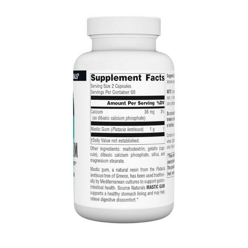 In clinical human research studies, mastic gum inhibited and reduced over-production of foreign organisms in the stomach and duodenum. When digestive flora is imbalanced, mastic gum appears to work on foreign organisms by disrupting their energy production and then rupturing their cells. Some researchers also believe that mastic gum works by stimulating increased production of the protective and soothing stomach lining. Source Naturals MASTIC GUM is standardized to 35% masticonic acids, which are the active compounds that support the lining of the stomach and duodenum. Source Naturals is pleased to partner with your local health food store to bring you MASTIC GUM. Add this ancient Greek secret to your health plan for supporting balanced digestive health today.