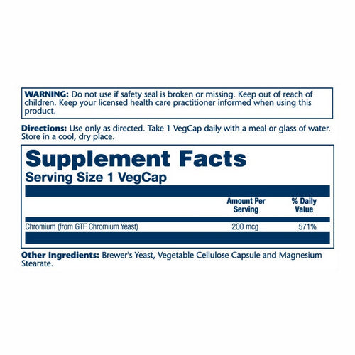 From Organically Bound, Trivalent Chromium Yeast with Glucose Tolerance Factor, Easy to Consume Capsules, Supports Glucose Metabolism, Facilitates the transport of glucose into cells by insulin.
