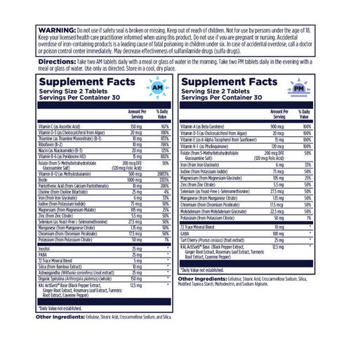Directions: Take two AM tablets daily with a meal or glass of water in the morning. Take two PM tablets dally in the evening with a meal or glass of water. Use only as directed. Store in a cool, dry place.