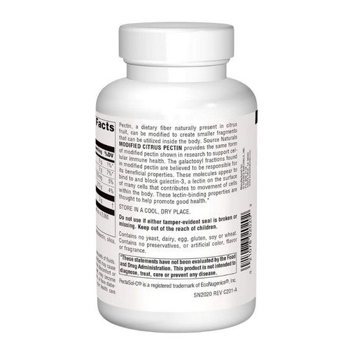 Pectin, a dietary fiber naturally present in citrus fruit, can be modified to create smaller fragments that can be utilized inside the body. Source Naturals Modified Citrus Pectin provides the same form of modified pectin shown in research to support cellular immune health. The galactosyl fractions found in modified pectin are believed to be responsible for its beneficial properties. These molecules appear to bind to and block galectin-3, a lectin on the surface of many cells that contributes to movement of cells within the body. These lectin-binding properties are thought to help promote good health.