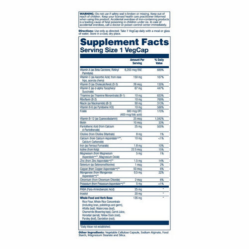 | Whole Food and Herb Base Rice Flour, Whole Rice Concentrate (including bran, polishings and germ), Alfalfa (leaf), Watercress (leaf), Chamomile (flowering tops), Carrot Juice, Horsetail (aerial), Yellow Dock (root), Parsley (leaf), Dandelion (root), Kelp. | 140 mg | * |