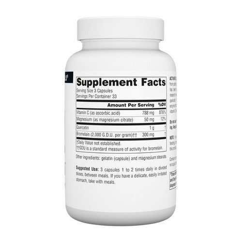 Activated Quercetin is a unique bioflavonoid derived from plant sources. In human cell culture studies, quercetin has been shown to inhibit histamine release. Additional research needs to be conducted to confirm the effects of quercetin, if any, in humans. Bromelain is a pineapple enzyme that may assist the body in times of stress, while vitamin C helps support the immune system.*