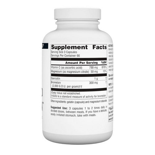 Activated Quercetin is a unique bioflavonoid derived from plant sources. In human cell culture studies, quercetin has been shown to inhibit histamine release. Additional research needs to be conducted to confirm the effects of quercetin, if any, in humans. Bromelain is a pineapple enzyme that may assist the body in times of stress, while vitamin C helps support the immune system.*