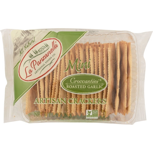 Roasted Garlic Croccantini, with their subtle flavor, are reminiscent of freshly baked garlic bread. With a hint of sea salt these crackers enhance the flavors of aged cheeses, cured meats and Mediterranean spreads.