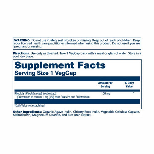 Rhodiola Extract vegetarian capsules each contain 1% each Rosavins and Salidrosides.