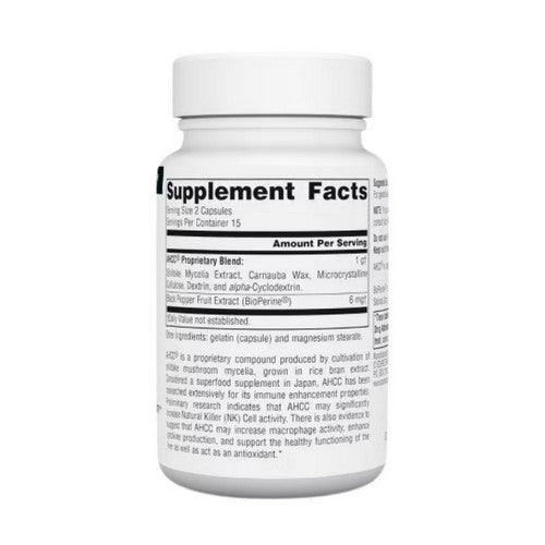 AHCC is a proprietary compound produced by cultivation of shitake mushroom mycelia, grown in rice bran extract. Considered a superfood supplement in Japan, AHCC has been researched extensively for its immune enhancement properties. Preliminary research indicates that AHCC may significantly increase Natural Killer (NK) Cell activity. There is also evidence to suggest that AHCC may increase macrophage activity, enhance cytokine production, and support the healthy functioning of the liver as well as act as an antioxidant.