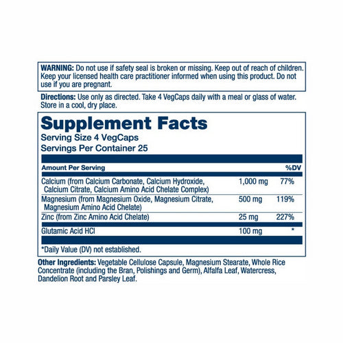 | Zinc (as Zinc Amino Acid Chelate) | 500 mg | 125% |