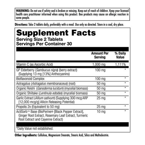 | GP Elderberry (Sambucus nigra) (berry extract) (Supplying 13 mg [13%] Anthocyanins) | 100 mg | * |