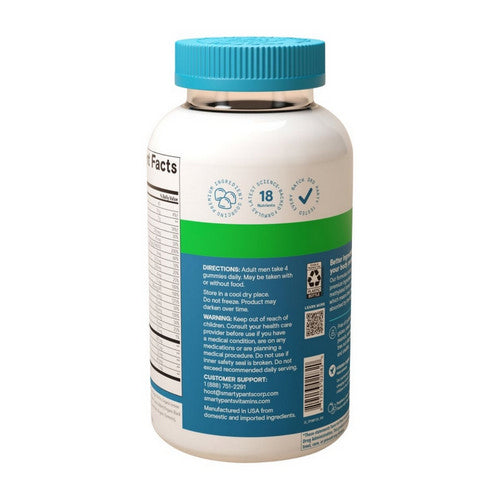 {"id":2614521069653,"title":"SmartyPants, Organic Men's Multi \u0026 Omegas Gummies, 120 Count","handle":"organic-mens-compelte-74417","description":"\u003cstrong\u003eProduct Description\u003c\/strong\u003e\u003cbr\u003e\u003cbr\u003e \t\t\t\t\t\t\t \n\t\t\t\u003cul\u003e\n\u003cli\u003eDietary Supplement\u003c\/li\u003e\n\u003cli\u003eMulti and Omega 3s\u003c\/li\u003e\n\u003cli\u003eProbiotics for Digestion*\u003c\/li\u003e\n\u003cli\u003eVitamin D3 for Bones*\u003c\/li\u003e\n\u003cli\u003eVitamin B12 for Energy*\u003c\/li\u003e\n\u003cli\u003eZinc for Immunity*\u003c\/li\u003e\n\u003c\/ul\u003e\t\t\t \u003cbr\u003e\u003cbr\u003e\u003cstrong\u003eProduct Benefits\u003c\/strong\u003e\u003cbr\u003e\n\t\u003cbr\u003e Most premium organic and vegetarian ingredients and pack them into each delicious gummy. \u003cbr\u003e\u003cbr\u003e\u003cstrong\u003eIngredients\u003c\/strong\u003e\u003cbr\u003e\u003cbr\u003e \n\n\u003cstyle type=\"text\/css\"\u003e\n.auto-style1 {\n\ttext-align: right;\n}\n\u003c\/style\u003e\n\n\n\u003cdiv class=\"prodSupCls\"\u003e\u003ctable cellpadding=\"3\" cellspacing=\"0\" width=\"100%\"\u003e\n\u003ctr\u003e\u003ctd colspan=\"3\"\u003e\u003cstrong style=\"font-size:16px;\"\u003eSupplement Facts \u003cbr\u003e\u003cbr\u003e\u003c\/strong\u003e\u003c\/td\u003e\u003c\/tr\u003e\n\u003ctr\u003e\n\t\u003ctd class=\"auto-style1\" colspan=\"3\"\u003e\n\u003cstrong\u003eServing Size: 4 Gummies\u003c\/strong\u003e \u003c\/td\u003e\n\u003c\/tr\u003e\n\u003ctr\u003e\n\u003ctd\u003e\n\t\t \u003c\/td\u003e\n\u003ctd\u003e\u003cstrong\u003eAmount Per Serving\u003c\/strong\u003e\u003c\/td\u003e\n\u003ctd\u003e\u003cstrong\u003e%DV\u003c\/strong\u003e\u003c\/td\u003e\n\u003c\/tr\u003e\n\u003ctr\u003e\n\u003ctd\u003e\n\t\tCalories\u003c\/td\u003e\n\u003ctd\u003e45\u003c\/td\u003e\n\u003ctd\u003e \u003c\/td\u003e\n\u003c\/tr\u003e\n\u003ctr\u003e\n\u003ctd\u003e\n\t\tTotal Carbohydrate\u003c\/td\u003e\n\u003ctd\u003e10 g\u003c\/td\u003e\n\u003ctd\u003e4%\u003c\/td\u003e\n\u003c\/tr\u003e\n\u003ctr\u003e\n\u003ctd\u003e\n\t\tSugars\u003c\/td\u003e\n\u003ctd\u003e7 g\u003c\/td\u003e\n\u003ctd\u003e**\u003c\/td\u003e\n\u003c\/tr\u003e\n\u003ctr\u003e\n\u003ctd\u003e\n\t\tIncludes 7g Added Sugars\u003c\/td\u003e\n\u003ctd\u003e \u003c\/td\u003e\n\u003ctd\u003e \u003c\/td\u003e\n\u003c\/tr\u003e\n\u003ctr\u003e\n\u003ctd\u003e\n\t\tVitamin A (as 50% beta-carotene, retinyl palmitate USP)\u003c\/td\u003e\n\u003ctd\u003e270 mcg\u003c\/td\u003e\n\u003ctd\u003e\n\t\t30%\u003c\/td\u003e\n\u003c\/tr\u003e\n\u003ctr\u003e\n\u003ctd\u003e\n\t\tVitamin C (as organic acerola cherry extract)\u003c\/td\u003e\n\u003ctd\u003e45 mg\u003c\/td\u003e\n\u003ctd\u003e50%\u003c\/td\u003e\n\u003c\/tr\u003e\n\u003ctr\u003e\n\u003ctd\u003e\n\t\tVitamin D (D-3 as cholecalciferol USP)\u003c\/td\u003e\n\u003ctd\u003e40 mcg (1800 IU)\u003c\/td\u003e\n\u003ctd\u003e\n\t\t200%\u003c\/td\u003e\n\u003c\/tr\u003e\n\u003ctr\u003e\n\u003ctd\u003e\n\t\tVitamin E (as d-alpha-tocopherol from sunflower oil FCC)\u003c\/td\u003e\n\u003ctd\u003e9 mg\u003c\/td\u003e\n\u003ctd\u003e\n\t\t60%\u003c\/td\u003e\n\u003c\/tr\u003e\n\u003ctr\u003e\n\u003ctd\u003eThiamin (as thiamine mononitrate USP)\u003c\/td\u003e\n\u003ctd\u003e\n\t\t0.12 mg\u003c\/td\u003e\n\u003ctd\u003e10%\u003c\/td\u003e\n\u003c\/tr\u003e\n\u003ctr\u003e\n\u003ctd\u003eRiboflavin USP (Vitamin B-2)\u003c\/td\u003e\n\u003ctd\u003e\n\t\t0.26 mg\u003c\/td\u003e\n\u003ctd\u003e20%\u003c\/td\u003e\n\u003c\/tr\u003e\n\u003ctr\u003e\n\u003ctd\u003eVitamin B-6 (as pyridoxal \n\t\t5-phosphate)\u003c\/td\u003e\n\u003ctd\u003e\n\t\t1.7 mg\u003c\/td\u003e\n\u003ctd\u003e100%\u003c\/td\u003e\n\u003c\/tr\u003e\n\u003ctr\u003e\n\u003ctd\u003eFolate (as L-methylfolate, calcium \n\t\tsalt)\u003c\/td\u003e\n\u003ctd\u003e\n\t\t400 mcg DFE (240 mcg L-methylfolate)\u003c\/td\u003e\n\u003ctd\u003e100%\u003c\/td\u003e\n\u003c\/tr\u003e\n\u003ctr\u003e\n\u003ctd\u003e\n\t\tVitamin B-12 (as methylcobalamin)\u003c\/td\u003e\n\u003ctd\u003e\n\t\t3 mcg\u003c\/td\u003e\n\u003ctd\u003e125%\u003c\/td\u003e\n\u003c\/tr\u003e\n\u003ctr\u003e\n\u003ctd\u003eBiotin USP\u003c\/td\u003e\n\u003ctd\u003e\n\t\t15 mcg\u003c\/td\u003e\n\u003ctd\u003e50%\u003c\/td\u003e\n\u003c\/tr\u003e\n\u003ctr\u003e\n\u003ctd\u003ePantothenic acid (as calcium \n\t\tD-pantothenate USP)\u003c\/td\u003e\n\u003ctd\u003e\n\t\t1.5 mg\u003c\/td\u003e\n\u003ctd\u003e30%\u003c\/td\u003e\n\u003c\/tr\u003e\n\u003ctr\u003e\n\u003ctd\u003eIodine (as potassium iodide USP)\u003c\/td\u003e\n\u003ctd\u003e\n\t\t150 mcg\u003c\/td\u003e\n\u003ctd\u003e100%\u003c\/td\u003e\n\u003c\/tr\u003e\n\u003ctr\u003e\n\u003ctd\u003eZinc (as zinc citrate USP)\u003c\/td\u003e\n\u003ctd\u003e\n\t\t5.5 mg\u003c\/td\u003e\n\u003ctd\u003e50%\u003c\/td\u003e\n\u003c\/tr\u003e\n\u003ctr\u003e\n\u003ctd\u003eSelenium (as sodium selenite)\u003c\/td\u003e\n\u003ctd\u003e\n\t\t14 mcg\u003c\/td\u003e\n\u003ctd\u003e25%\u003c\/td\u003e\n\u003c\/tr\u003e\n\u003ctr\u003e\n\u003ctd\u003eSodium\u003c\/td\u003e\n\u003ctd\u003e\n\t\t25 mg\u003c\/td\u003e\n\u003ctd\u003e0%\u003c\/td\u003e\n\u003c\/tr\u003e\n\u003ctr\u003e\n\u003ctd\u003eOrganic Flax Seed Oil\u003c\/td\u003e\n\u003ctd\u003e\n\t\t341 mg\u003c\/td\u003e\n\u003ctd\u003e**\u003c\/td\u003e\n\u003c\/tr\u003e\n\u003ctr\u003e\n\u003ctd\u003e\u003cspan\u003eOmega-3 (α-Linolenic Acid)\u003c\/span\u003e\u003c\/td\u003e\n\u003ctd\u003e\n\t\t171 mg\u003c\/td\u003e\n\u003ctd\u003e**\u003c\/td\u003e\n\u003c\/tr\u003e\n\u003ctr\u003e\n\u003ctd\u003e\u003cspan\u003eOmega-6 (Linoleic Acid)\u003c\/span\u003e\u003c\/td\u003e\n\u003ctd\u003e\n\t\t43 mg\u003c\/td\u003e\n\u003ctd\u003e**\u003c\/td\u003e\n\u003c\/tr\u003e\n\u003ctr\u003e\n\u003ctd\u003e\u003cspan\u003eOmega-9 (Oleic Acid)\u003c\/span\u003e\u003c\/td\u003e\n\u003ctd\u003e\n\t\t55 mg\u003c\/td\u003e\n\u003ctd\u003e**\u003c\/td\u003e\n\u003c\/tr\u003e\n\u003ctr\u003e\n\u003ctd\u003eVitamin K-2 (as menaquinone-7)\u003c\/td\u003e\n\u003ctd\u003e\n\t\t36 mg\u003c\/t