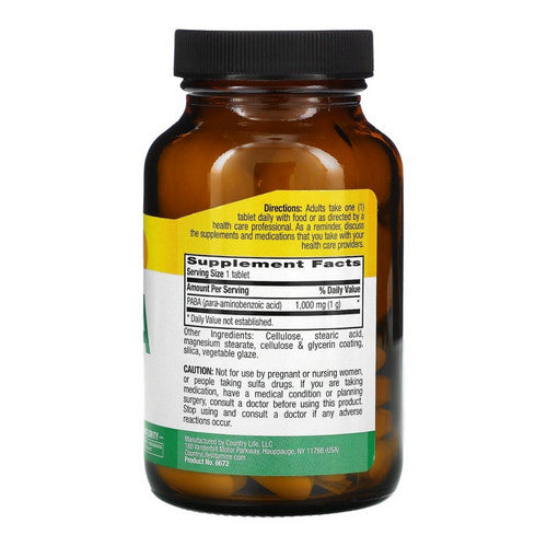 | PABA (para-aminobenzoic acid) | 1,000 mg (1 g) | * |