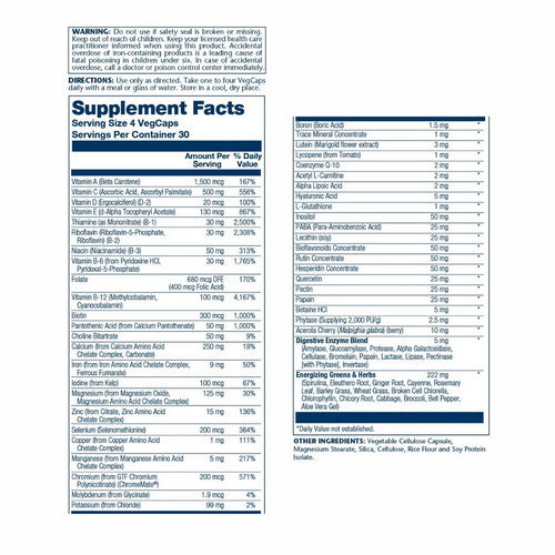 Dietary Supplement Vegetarian Antioxidant Multi with: Lutein,COQ10,Hyaluronic,ALA