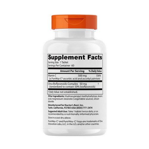 Doctor's Best Sustained Release Vitamin C with PureWay-C is a unique formula that supports the body's immune and antioxidant systems.* It contains PureWay-C, a unique form of vitamin C that contains vitamin C-lipid metabolites that provides superior uptake, bioavailability and retention in cells, and is a more potent free radical scavenger than several other forms of vitamin C.* The increased bioavailability from PureWay-C means this formula has a greater potential than other forms of vitamin C to help support healthy neuron function and enhanced immune system activity.*