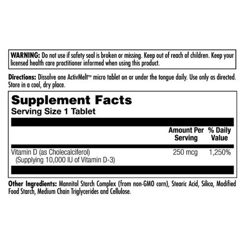 D 3 activmelt micro tablets melt quickly in the mouth and are designed for optimal absorption in the body. Vitamin D is intended to provide nutritive support for normal, healthy formation of the skeleton and for immune and bone support.