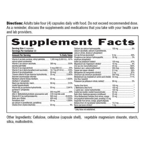 Directions: Adults take four capsules daily with food. Do not exceed recommended dose. As a reminder, discuss the supplements and medications that you take with your health care and lab providers.
