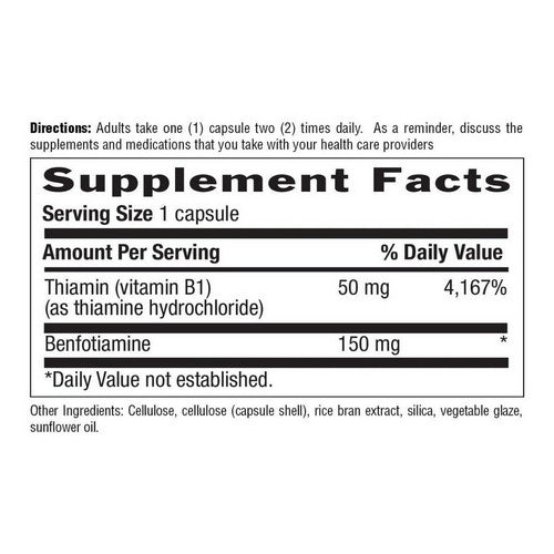 Benfotiamine is supplement contains a unique combination of thiamine, Vitamin B1, and benfotiamine, a Vitamin B1 derivative. This formulas combination supports cell glucose metabolism as well as a healthy nervous system function, including strong nerve support.