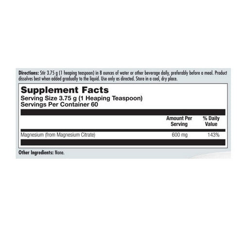 | Magnesium (from Magnesium Citrate) | 600 mg | 143% |
