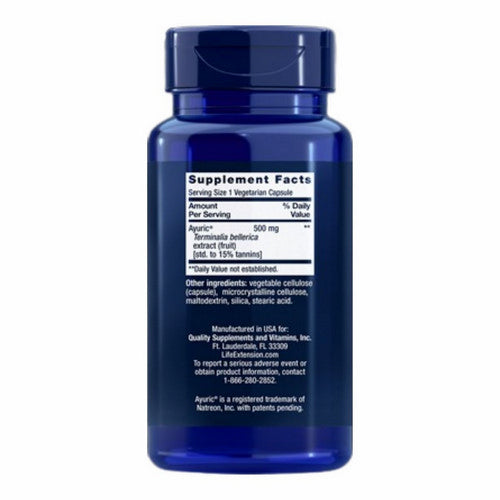 | Ayuric Terminalia bellerica extract (fruit) [std. to 15% tannins] | 500 mg |