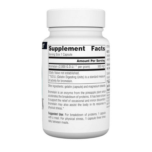 | †Daily Value not established. *G.D.U. (Gelatin Digesting Units) is a standard measure of activity for bromelain. | ||