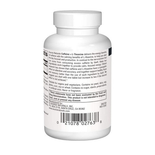 Caffeine + L-Theanine delivers the energy benefits of caffeine with the calming benefits of L-theanine, to help you start the day focused and productive. In contrast to the nervousness that can come from consuming excess caffeine by itself, these two ingredients work together to provide calm, focused energy. caffeine and L-theanine have a synergistic effect on attention & accuracy, & together support healthy focus and memory better than the use of each ingredient by itself.