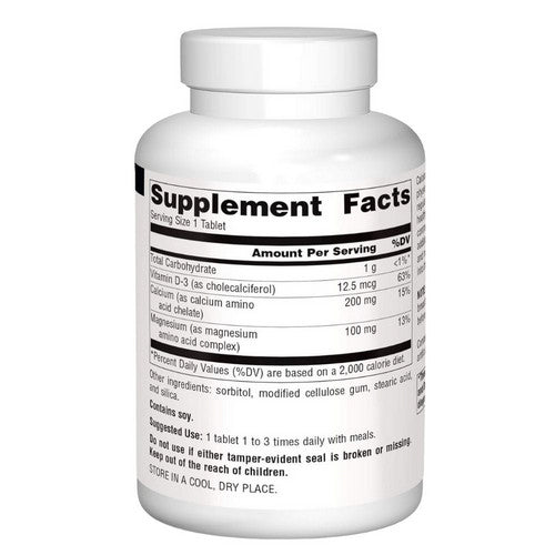 {"id":6869112881237,"title":"Source Naturals, Calcium and Magnesium, 300 mg, 240 Tabs","handle":"calcium-and-magnesium-6173","description":"\u003cstrong\u003eProduct Description\u003c\/strong\u003e\u003cbr\u003e\u003cbr\u003e \t\t\t\t\t\t\t \u003cdiv class=\"prodDescCls\"\u003e\u003cul\u003e\n\u003cli\u003eAmino Acid Chelate with Vitamin D-3\u003c\/li\u003e\n\u003cli\u003eConsidered as Dietary Supplement\u003c\/li\u003e\n\u003c\/ul\u003e\u003c\/div\u003e \n\t\t\t\t\t\t \u003cbr\u003e\u003cbr\u003e\u003cstrong\u003eProduct Benefits\u003c\/strong\u003e\u003cbr\u003e\n\t\u003cbr\u003e \u003cbr\u003e\u003cbr\u003e\u003cstrong\u003eIngredients\u003c\/strong\u003e\u003cbr\u003e\u003cbr\u003e \u003cdiv class=\"prodSupCls\"\u003e\u003ctable cellpadding=\"3\" cellspacing=\"0\" width=\"100%\"\u003e\n\u003ctr\u003e\u003ctd colspan=\"3\"\u003e\n\u003cstrong style=\"font-size:16px;\"\u003eSupplement Facts\u003c\/strong\u003e\u003cspan class=\"subSpan\"\u003e\u003cstrong\u003eServing Size:\u003c\/strong\u003e 1 Tablet\u003c\/span\u003e\n\u003c\/td\u003e\u003c\/tr\u003e\n\u003ctr\u003e\n\u003ctd width=\"70%\"\u003e\u003c\/td\u003e\n\u003ctd width=\"15%\"\u003e\u003cstrong\u003eAmount Per Serving\u003c\/strong\u003e\u003c\/td\u003e\n\u003ctd width=\"15%\"\u003e\u003cstrong\u003e%DV\u003c\/strong\u003e\u003c\/td\u003e\n\u003c\/tr\u003e\n\u003ctr\u003e\n\u003ctd\u003eVitamin D-3 (as cholecalciferol)\u003c\/td\u003e\n\u003ctd\u003e500 IU\u003c\/td\u003e\n\u003ctd\u003e125%\u003c\/td\u003e\n\u003c\/tr\u003e\n\u003ctr\u003e\n\u003ctd\u003eCalcium (as calcium amino acid chelate)\u003c\/td\u003e\n\u003ctd\u003e200 mg\u003c\/td\u003e\n\u003ctd\u003e20%\u003c\/td\u003e\n\u003c\/tr\u003e\n\u003ctr\u003e\n\u003ctd\u003eMagnesium (as magnesium amino acid chelate)\u003c\/td\u003e\n\u003ctd\u003e100 mg\u003c\/td\u003e\n\u003ctd\u003e25%\u003c\/td\u003e\n\u003c\/tr\u003e\n\u003ctr\u003e\u003ctd colspan=\"3\"\u003e\n\u003cb\u003eOther Ingredients\u003c\/b\u003e\u003cdiv class=\"prodIngCls\"\u003e\n\u003cp\u003eSorbitol, modified cellulose gum, stearic acid, and colloidal silicon dioxide\u003c\/p\u003e\n\u003cp\u003eContains no yeast, dairy, egg, gluten or wheat. Contains no salt, preservatives, or artificial color, flavor or fragrance.\u003c\/p\u003e\n\u003c\/div\u003e\n\u003c\/td\u003e\u003c\/tr\u003e\n\u003c\/table\u003e\u003c\/div\u003e\n\t\u003cbr\u003e\u003cbr\u003e\u003cstrong\u003eSuggestions\u003c\/strong\u003e\u003cbr\u003e\u003cbr\u003e \u003cdiv class=\"prodDescCls\"\u003e\n\u003cp\u003e1 to 3 tablets daily with meals\u003c\/p\u003e \u003c\/div\u003e \u003cbr\u003e\u003cbr\u003e\u003cstrong\u003eSpecial Note\u003c\/strong\u003e\u003cbr\u003e\u003cbr\u003e\n\tNA\n\t\u003cbr\u003e\u003cbr\u003e\u003cstrong\u003eWarnings\u003c\/strong\u003e\u003cbr\u003e\u003cbr\u003e \u003cdiv class=\"prodDescCls\"\u003e\n\u003cp\u003e\u003cstrong\u003eNote:\u003c\/strong\u003e If you are pregnant, may become pregnant, or breastfeeding, consult your health care professional before using this product.\u003c\/p\u003e\n\u003cp\u003eDo not use if either tamper-evident seal is broken or missing. Keep out of the reach of children.\u003c\/p\u003e\n\u003c\/div\u003e\u003cdiv class=\"prodEmtCls\"\u003e\u003c\/div\u003e \u003cbr\u003e\u003cbr\u003e\u003cstrong\u003eCalifornia Proposition 65 WARNING\u003c\/strong\u003e\u003cbr\u003e\u003cbr\u003eSome products on this website contains progesterone, a chemical known to the State of California to cause cancer. Consult with your physician before using this product.\u003cbr\u003e\u003cbr\u003e\u003cstrong\u003eDisclaimer\u003c\/strong\u003e\u003cbr\u003e\u003cbr\u003eHerbsdaily.com offers\n\t\t\t\t\t\t\t\tnationally branded products that are produced according to manufacturing standards\n\t\t\t\t\t\t\t\tset by regulators at everyday low prices. Do not use unproven, unbranded products, which can pose serious risks to your health.","published_at":"2022-11-02T09:18:25-07:00","created_at":"2022-11-02T09:18:26-07:00","vendor":"Source Naturals","type":"Calcium","tags":["Brand_Source Naturals","Calcium","DISAPPROVED","mapped_vendor_product","Minerals","restricted_on_marketplace","VitaminsSupplements"],"price":1995,"price_min":1995,"price_max":1995,"available":true,"price_varies":false,"compare_at_price":2850,"compare_at_price_min":2850,"compare_at_price_max":2850,"compare_at_price_varies":false,"variants":[{"id":40401928388693,"title":"Default Title","option1":"Default Title","option2":null,"option3":null,"sku":"15144","requires_shipping":true,"taxable":true,"featured_image":null,"available":true,"name":"Source Naturals, Calcium and Magnesium, 300 mg, 240 Tabs","public_title":null,"options":["Default Title"],"price":1995,"weight":676,"compare_at_price":2850,"inventory_management":"shopify","barcode":"021078003045","requires_selling_plan":false,"selling_plan_allocations":[],"quantity_rule":{"min":1,"max":null,"increment":1}}],"images":["\/\/www.herbsdaily.com\/cdn\/shop\/files\/6173_85aa1523-de58-4604-946b-bcf85ff1afb5.jpg?v=1751279360","\/\/www.herbsdaily.com\/cdn\/shop\/files\/6173_1.jpg?v=1751279360","\/\/www.herbsdaily.com\/cdn\/shop\/files\/6173_2.jpg?v=1751279360"],"featured_image":"\/\/www.herbsdaily.com\/cdn\/shop\/files\/6173_85aa1523-de58-4604-946b-bcf85ff1afb5.jpg?v=1751279360","options":["Title"],"media":[{"alt":null,"id":25253060575317,"position":1,"preview_image":{"aspect_ratio":1.0,"height":500,"width":500,"src":"\/\/www.herbsdaily.com\/cdn\/shop\/files\/6173_85aa1523-de58-4604-946b-bcf85ff1afb5.jpg?v=1751279360"},"aspect_ratio":1.0,"height":500,"media_type":"image","src":"\/\/www.herbsdaily.com\/cdn\/shop\/files\/6173_85aa1523-de58-4604-946b-bcf85ff1afb5.jpg?v=1751279360","width":500},{"alt":null,"id":25253060640853,"position":2,"preview_image":{"aspect_ratio":1.0,"height":500,"width":500,"src":"\/\/www.herbsdaily.com\/cdn\/shop\/files\/6173_1.jpg?v=1751279360"},"aspect_ratio":1.0,"height":500,"media_type":"image","src":"\/\/www.herbsdaily.com\/cdn\/shop\/files\/6173_1.jpg?v=175127936