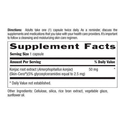 | Konjac root extract (Amorphophallus konjac) (Skin-Cera®) (5% glycosylceramides equal to 2.5 mg) | 50 mg | |