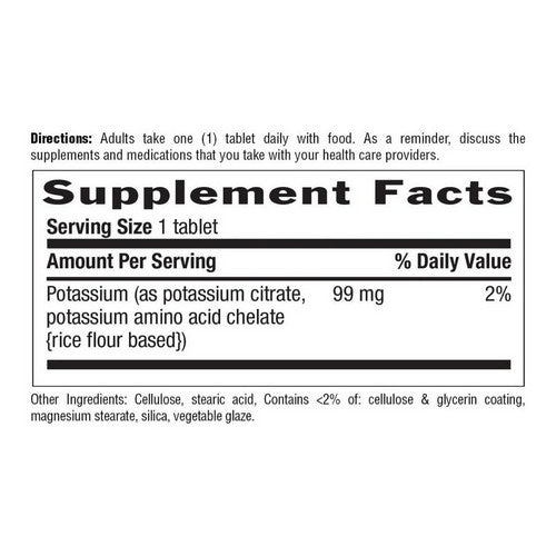 | Potassium (as potassium citrate, potassium amino acid chelate) | 99 mg | 3% |