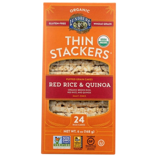 Organic thin stackers red rice and quinoa salt free, this smooth blend of whole grain brown rice, red rice, and quinoa is popped to perfection. Can snack without a second thought knowing these organic thin stackers.