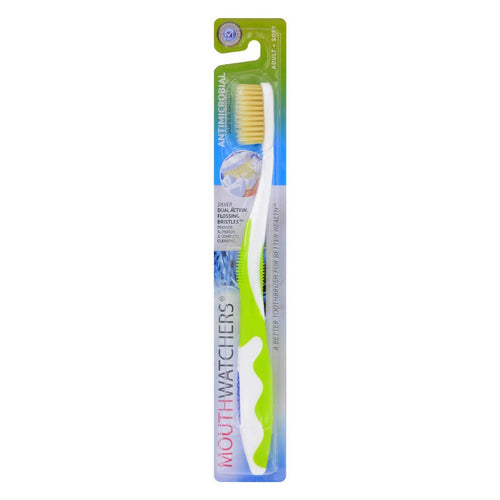 Mouth watchers antimicrobial soft bristle adult toothbrush green is this toothbrush a breakthrough in oral care by providing the optimal cleaning experience. The revolutionary antimicrobial dual layer, reach into areas untouched by prior toothbrushes, leaving teeth and gums feeling just as clean as after a professional dental cleaning.