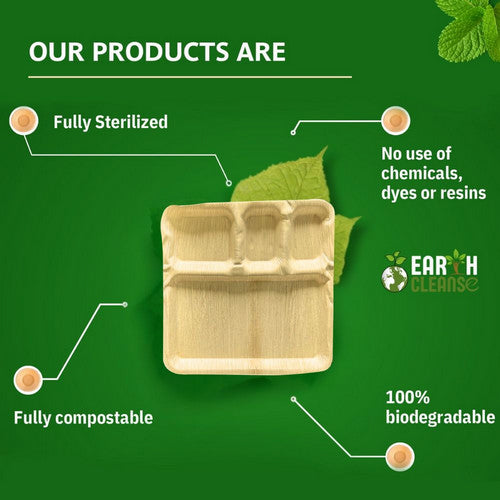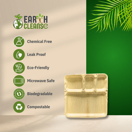 Earth Cleanse, Areca Palm Leaf Square Partition Plates 11-Inch, Pack of 75