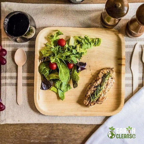 Earth Cleanse, Areca Palm Leaf Square Partition Plates 11-Inch, Pack o
