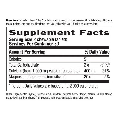 | Calcium (from 1,000 mg calcium carbonate) | 400 mg | 40% |